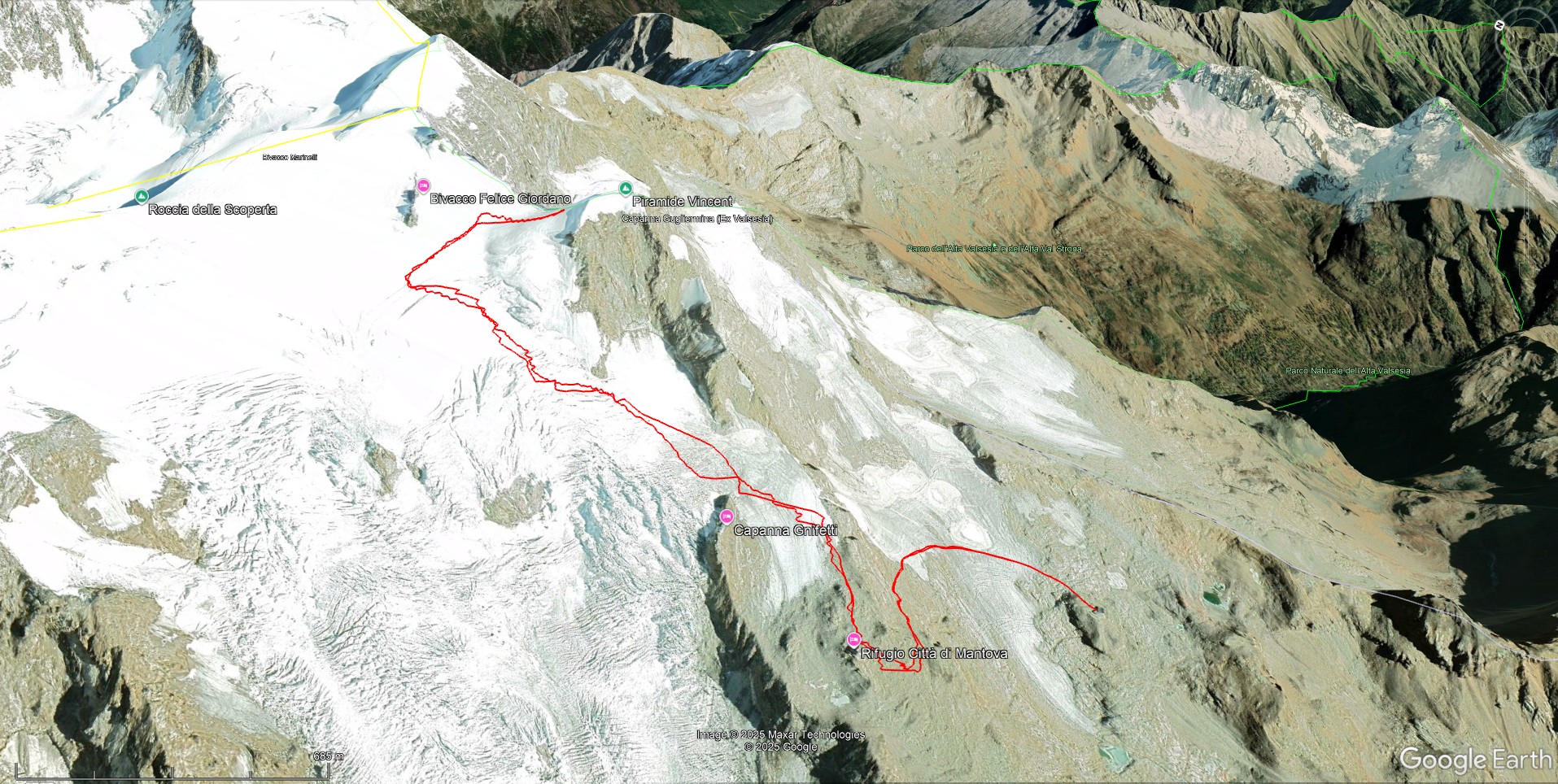 La Piramide Vincent da Indren. (17/06/2025) scialpinismo